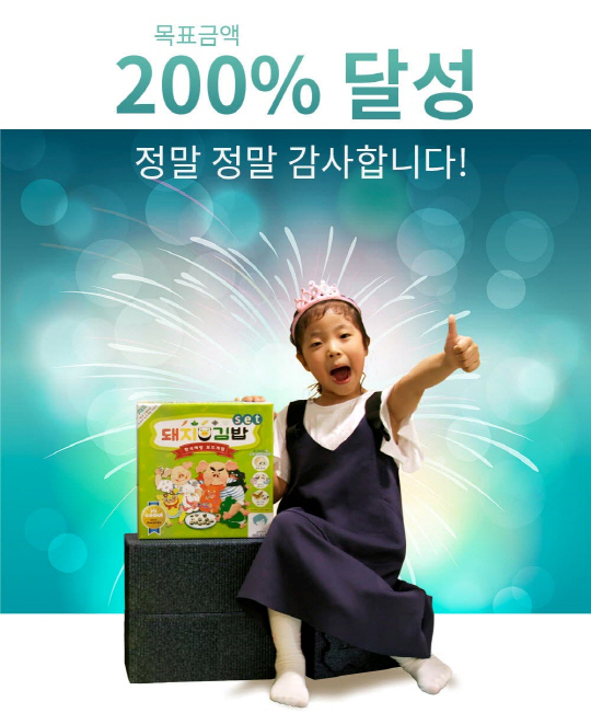 스토리메이커의 '돼지김밥 세트'는 11월 한달 동안 펀딩을 모집한 결과 당초 목표 금액인 500만원을 훌쩍 넘겨, 300%에 가까운 1488만원 이상을 모금하는데 성공했다. 11월 30일 펀딩이 마무리 되는 시점까지 300% 달성은 무난할 것으로 보인다.