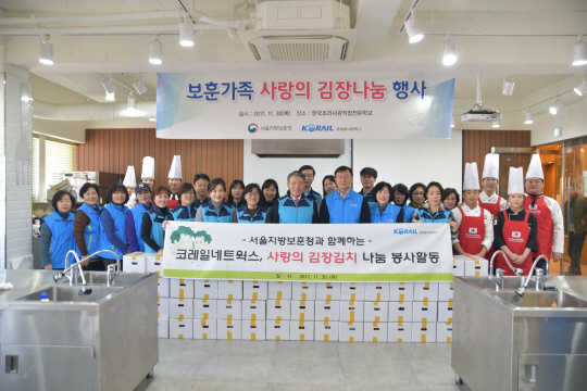 코레일네트웍스가 30일 서울지방보훈청과 함께 독거 보훈가족의 행복한 겨울나기를 위한 사랑의 김장김치 나눔 행사를 진행했다.