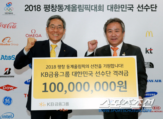 KB금융그룹은 지난 29일 대한체육회를 방문해 2018 평창 동계올림픽에 출전하는 대한민국 국가대표 선수단에 격려금 1억원을 전달했다고 밝혔다.