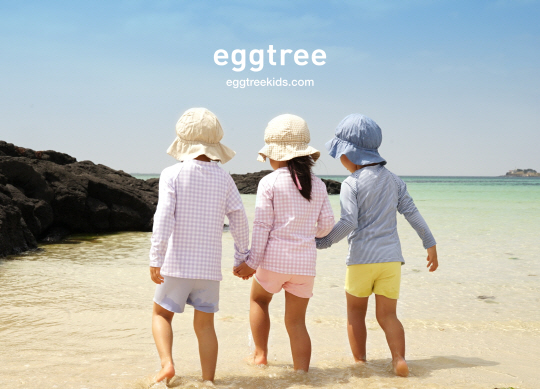 에그트리가 여름 시즌을 맞아 자외선 차단 유아 수영복을 출시했다.
