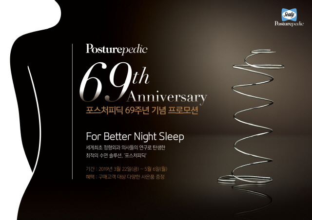 137년 전통의 씰리침대가 오는 5월 6일까지 독자적인 스프링 기술인 '포스처피딕'의 탄생 69주년을 기념해 프로모션을 진행한다.