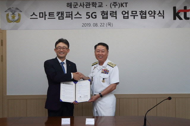 KT가 해군사관학교와 함께 '5G 스마트 캠퍼스' 구축을 위한 사업 업무협약(MOU)을 체결, 4차 산업혁명시대 해군비전 '스마트 네이비' 실현을 위한 인재 양성 체계 구축에 협력한다고 22일 밝혔다.