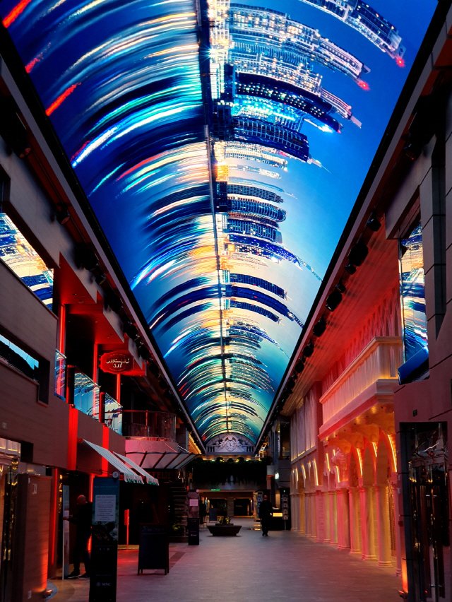 삼성전자는 그란디오사호 내부 갤러리아 천장에 전체 면적 580㎡의 커브드 LED 사이니지를 설치했다. 전체 길이는 93m로 영국 런던의 랜드마크인 빅벤의 높이와 유사하다.