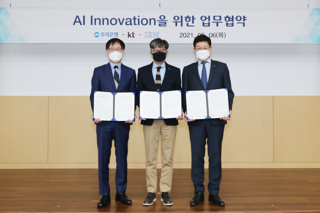 KT가 우리은행, 한국IBM과 우리은행의 인공지능(AI) 금융 서비스 고도화를 위한 'AI 랩'을 구성하는 것을 주요 내용으로 한 업무협약(MOU)을 맺었다고 6일 밝혔다.