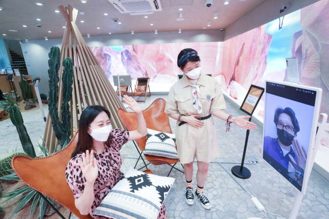 인디언 랜선파티는 위그암 텐트 내부에 설치된 LG스탠바이미를 이용해 화상통화를 하는 프로그램이다. NFC 기능을 활용해 터치 한 번으로 간편하게 스마트폰을 연동하고 대형화면을 통해 가족, 연인과 화상통화를 하며 제품 편의성을 경험할 수 있다.