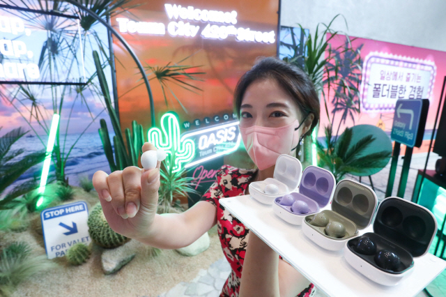 갤럭시 버즈팩은 사용 중인 스마트폰 제조사와 관계없이 월정액 10만5000원(VAT 포함) '5G 프리미어 플러스' 이상 요금제 가입 고객이라면 누구나 '카테고리 팩' 부가 서비스로 갤럭시 버즈2(판매가 14만9000원)를 선택할 수 있는 프로모션 패키지 상품이다. 24개월간 할부로 구매 후 '갤럭시 버즈팩' 유지 시 할부 금액 전액 할인(할부이자 5.9% 별도 청구)을 제공하는 식이다.